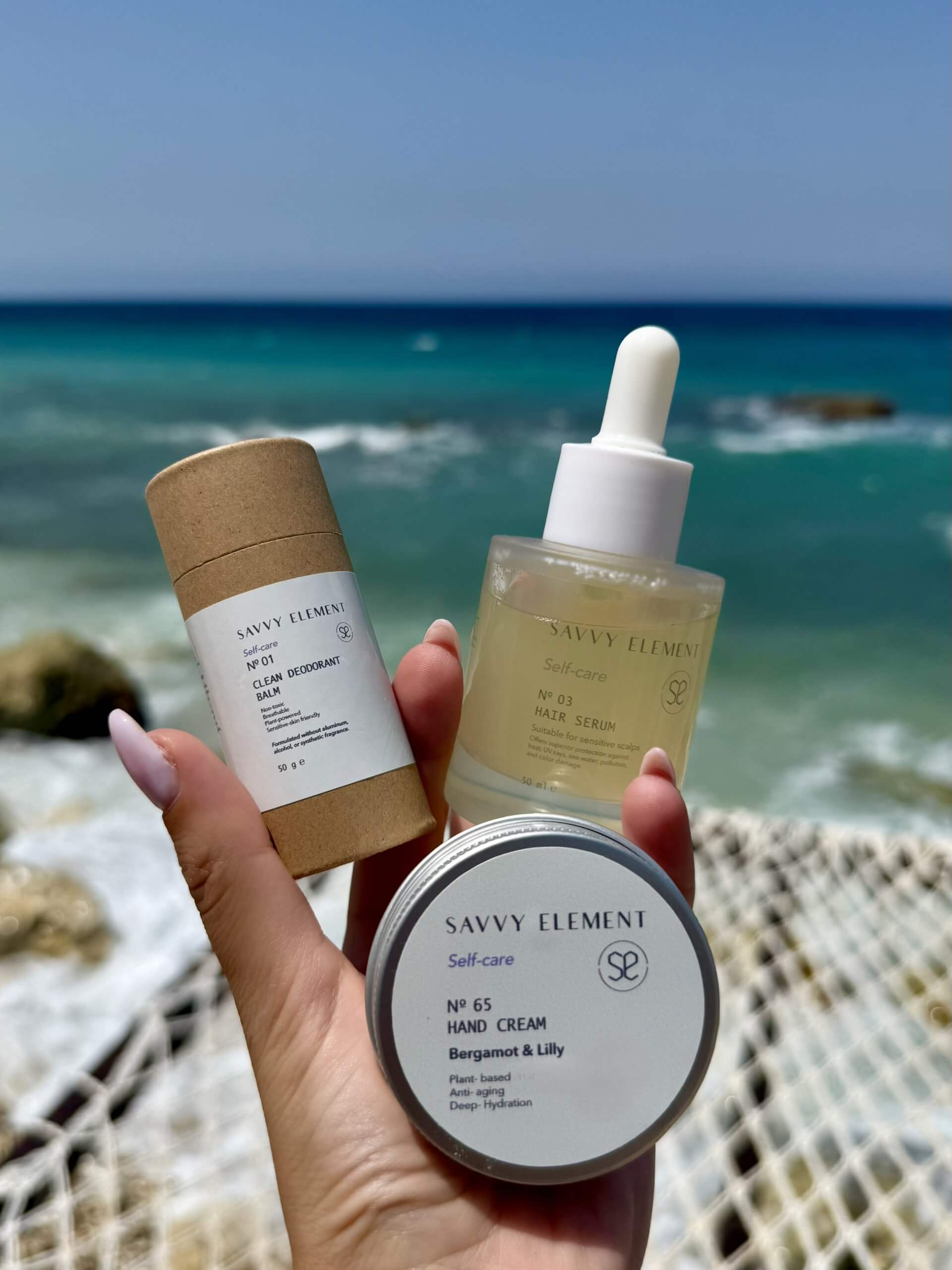 A carefully curated trio of products that has all of your summer needs and essentials in mind. Our hair serum protects each lock of hair from the heat of the summer sun and the saltiness of the Mediterranean sea. Our deodorant takes care of the summer season’s most dreaded problem– the sweat and perspiration. Coupled with our hand cream that nourishes and hydrates the hands it touches, this trio will be the answer to all of your inconveniences this summer.